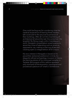This zine to Francesco Mangado's interview 'Architectonics'. The concept of the layout and design is to be simple but not boring. Therefore, having the stark contrast of red really create a content of visual interest. In addition, using simple lines give the zine some dimension and level of depth visually.